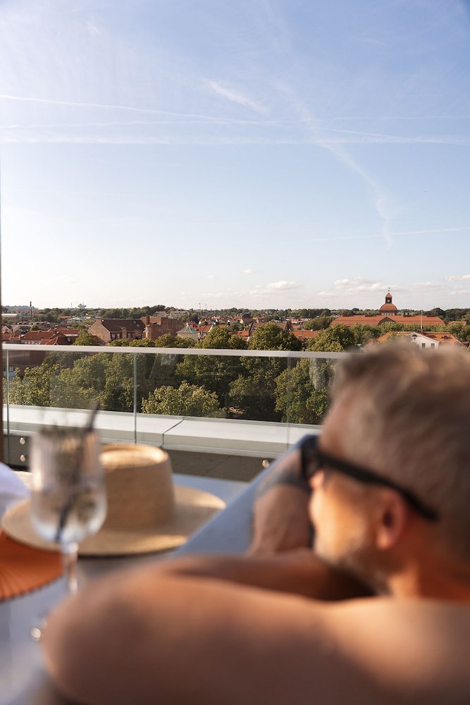 Här kan du njuta av en stunds avslappning efter en lång dag, och med den vackra utsikten över staden som bakgrund kan du inte hitta en bättre plats att koppla av på. Jacuzzin är placerad utomhus under en pergola utan tak. Vid bokning av jacuzzi har man badtunnan för sig själv.